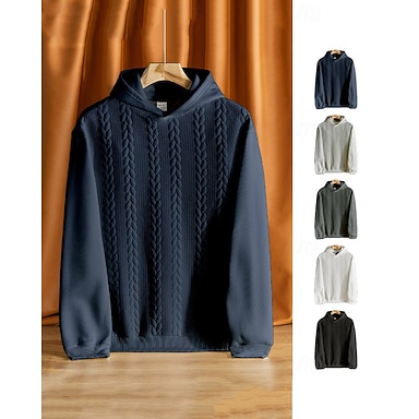 Hombre Jacquard Sudadera Pull-over Negro Blanco Naranja Caqui Gris Cuello Mao Plano Con Texturas Deporte Casual Diario Ropa de calle Fresco Ropa deportiva Primavera & Otoño Ropa Sudaderas con capucha