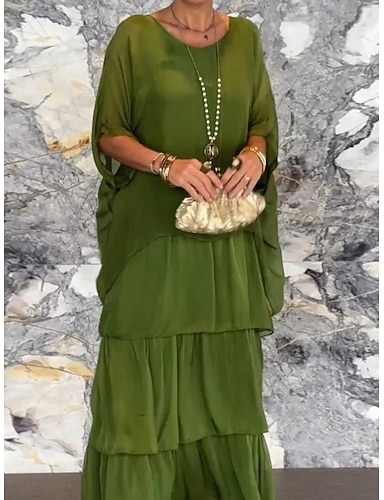 Mujer Vestido maxi Vestido informal Vestido de raso Elegante Moda Moderno Exterior Vacaciones Noche Ajuste regular Plano Media Manga Cuello Barco Negro Blanco Morado Verde Trébol Verano Primavera