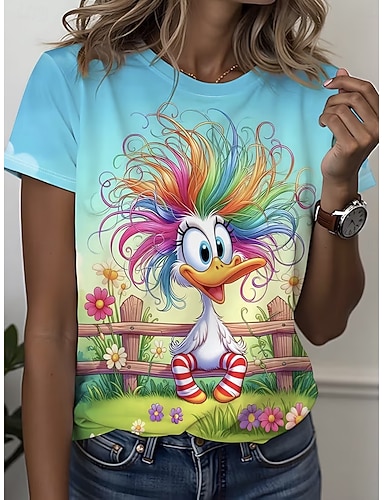 Mujer Camiseta Estampado Graphic Animal Caricatura Elegante Clásico Casual Manga Corta Cuello Barco Escote Redondo Tops regulares Diario Azul Piscina Blanco Rosa Naranja Verano Primavera