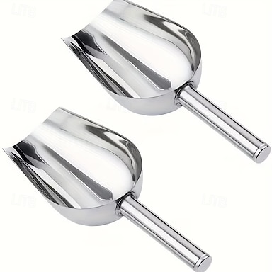 2 cucharas para hielo, cucharas de cocina para hielo, aptas para máquinas de hielo, cucharas pequeñas para alimentos, aptas para bares, fiestas, bodas, comida para perros, acero inoxidable plateado