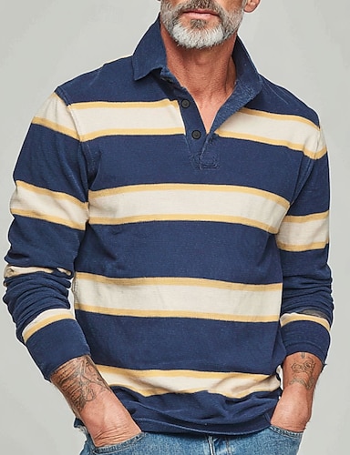 Hombre Tiras horizontales Polo de rugby Manga Larga Camisas de polo Camisas con cuello Ropa deportiva Casual Escuela Exterior Ropa Deportiva Impresión 3D Primavera Otoño Invierno Azul Piscina Morado