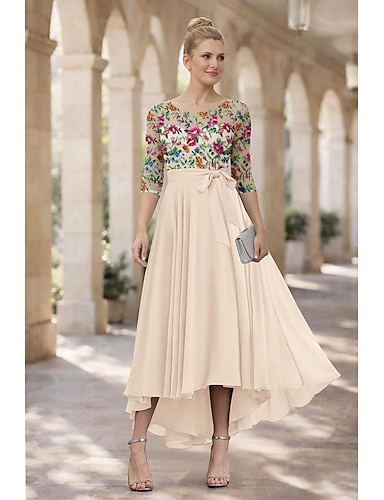 Corte A Vestidos Vestido alto-bajo Hasta el Tobillo Vestido Cóctel Vestido Invitada Boda Vestido de Madrina Media Manga Camiseta con cuello redondo Elegante Casual Largura Asimétrica Formal Gasa con