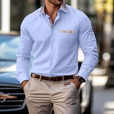 Hombre Camisa para Vestido Camisa sin planchar Comprobar camisa Elástico Boda Exterior Bleu Ciel Negro Rosa Azul Piscina Manga Larga Cuello Verano Primavera Ropa