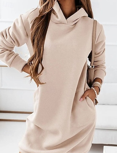 Mujer Mini vestido Vestido de Navidad rojo Vestido negro Vestido con capucha Elegante Moda Clásico Diario Exterior Oficina Ajuste regular Plano Manga Larga Con Capucha Negro Rojo Marrón Caqui