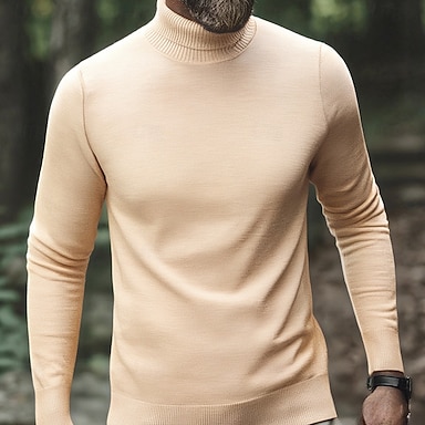 Hombre Suéter de punto Estriado Tejer Tops regulares De Punto Plano Cuello Alto Moda Básico Vacaciones Ropa Cotidiana Ropa Invierno Otoño Color Camello Vino M L XL