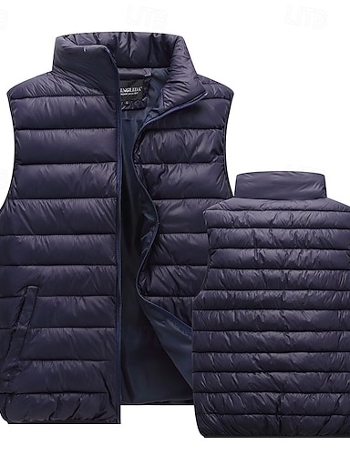 Hombre Chaleco acolchado Chaleco Diario Vacaciones Cita Moda Casual Otoño invierno Bolsillo Poliéster Mantiene abrigado Cómodo Color sólido Cremallera Escote Chino Ajuste regular Negro Rojo Azul
