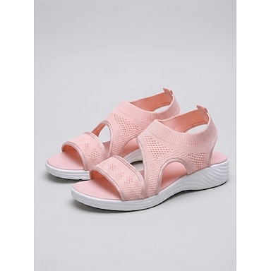 Sandalias cómodas de mujer de color rosa suave: tejido de malla transpirable, suela flexible, perfectas para uso casual y salidas diarias.