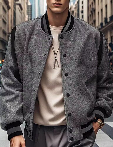 Hombre Chaqueta casual Chaqueta de universidad Vacaciones Diario Transpirable Bolsillo Primavera Otoño Bloque de color Moda Clásico Escote Chino Regular Negro Azul Piscina Gris Chaquetas