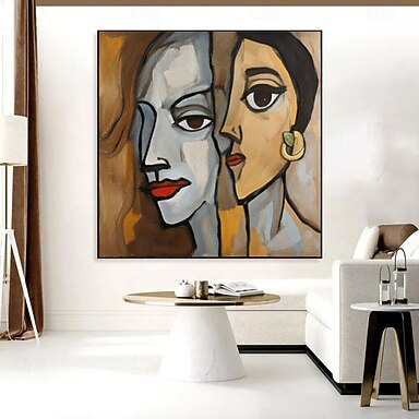 Pintura de rostros de mujeres al estilo Picasso, hecha a mano, arte personalizado, pintura abstracta de pareja, decoración única para consultorio de terapia, pintura de rostros de mujeres sobre lienzo