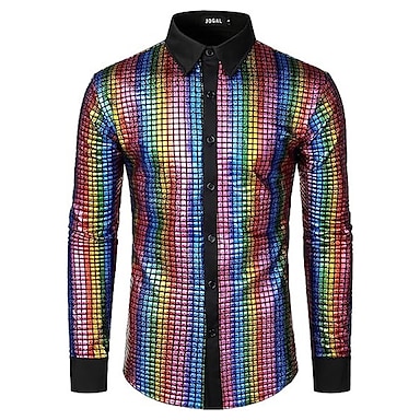 Retro Antiguo Años 70 Disco Blusa / Falda Cosplay Bloque de color Disfraz Hombre Disfraz de carnaval Víspera de Todos los Santos Carnaval Mascarada Rendimiento Fiesta Escenario Adulto Camisas Verano