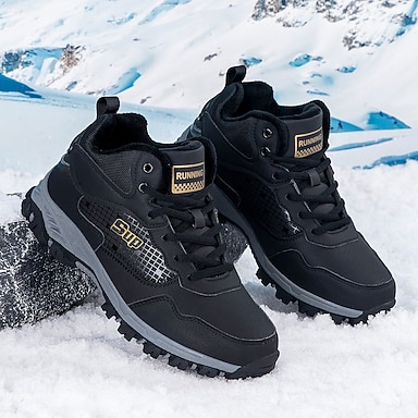 Botas de senderismo de invierno negras para hombre, botas impermeables y aislantes para la nieve, exploración al aire libre y senderismo invernal, calzado duradero para condiciones de frío.