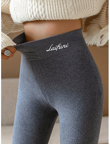 Mujer leggings forrados de polar Pantalones de lana Polainas Moda Ropa de calle Casual Hasta el Tobillo Alta cintura Plano Confortable Suave Cómodo Microelástico Exterior Calle Gris Claro Gris oscuro