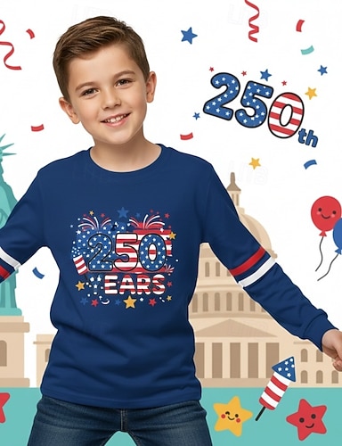 Algodón 100% Algodón Niños Chico Azul Piscina Negro Blanco Graphic 250 aniversario Camiseta Blusa Cuello Barco Manga Corta Exterior Uso Diario Moda Ropa de calle Design Estampado Verano Primavera