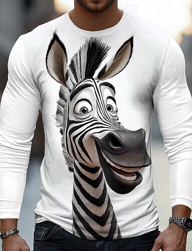 Hombre Animal Gracioso Patrones de cebra Camiseta Manga Larga Camiseta Impresión 3D Cuello Barco Camisa Moda Básico Casual Diario Calle Azul Piscina Blanco 1 Blanco 2 Verano Primavera Ropa S M L XL