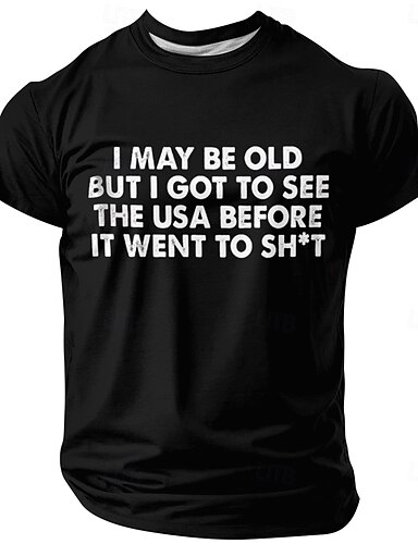 Abuelo motero como un abuelo normal, solo que más guay. Camiseta de manga corta con cuello redondo, estilo casual, con estampado patriótico desgastado y bandera americana para hombre. Ropa de