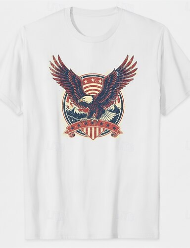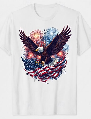 4 de julio de 2026 250º Día de los Caídos Camiseta de manga corta con cuello redondo y bandera de EE.UU. impresión 3D para hombres Calle diaria