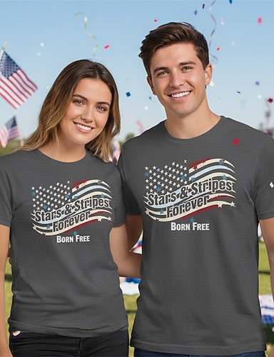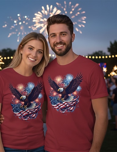 4 de julio de 2026 250º Día de los Caídos Camiseta de Cuello Redondo de Hombre Impresión 3D Bandera de EE. UU. de Manga Corta Diaria Calle