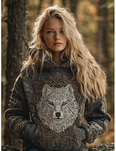 Mujer Sudadera con capucha Pullover Graphic Animal Tribal Casual Manga Larga Con Capucha Tops regulares Casual Marrón Otoño