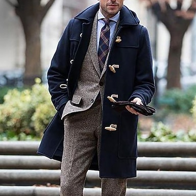 Hombre Sobretodo Gabardina Gabardina larga Vacaciones Diario Invierno Poliéster Resistente al Viento Mantiene abrigado Ropa de calle Ropa Moda Clásico Plano Bolsillo Con Capucha Botonadura Simple