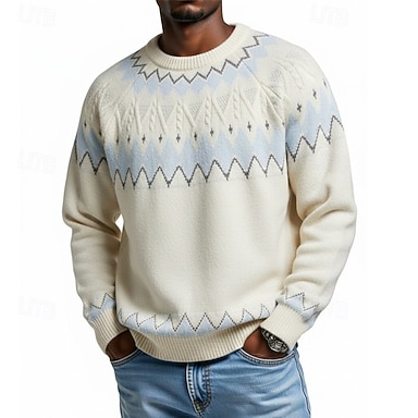 Hombre Pulóveres Suéter de punto Estriado Tejer Tops regulares De Punto Geométrico Cuello Barco Moda Ropa de calle Casual Ropa Cotidiana Ropa Otoño Invierno Blanco S M L