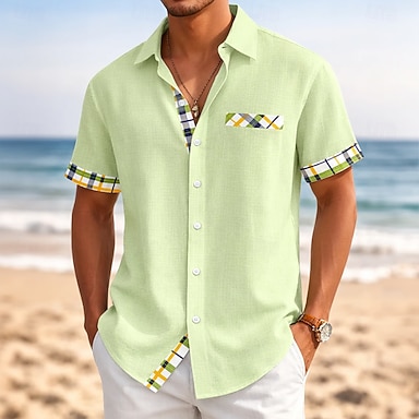 Hombre Geométrico Cuadrícula / Cuadros Camisa Camisa de verano Abotonar la camisa Manga Corta Moda informal Diario vacaciones en la playa Verano Cuello Vuelto Impresión 3D Un bolsillo delantero