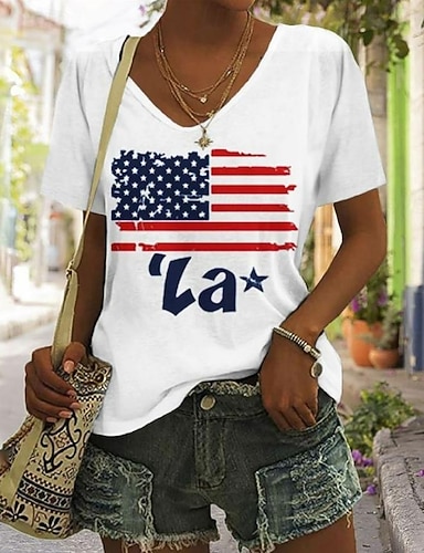 Día de la Independencia Aniversario Americano Patriótico Camiseta de Mujer Gráfica Bandera Vintage Elegante Clásica de Manga Corta Cuello en V Diaria Impresión Azul Negra Azul Marino Morado Verano