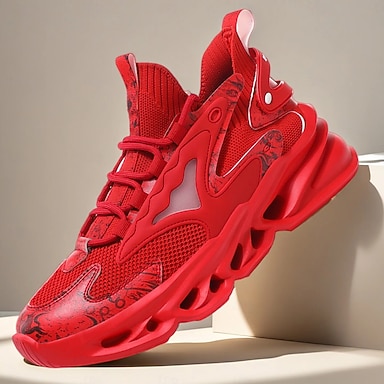 Zapatillas deportivas rojas navideñas para hombre: ligeras, transpirables y modernas, perfectas para hacer ejercicio y actividades al aire libre durante las vacaciones.
