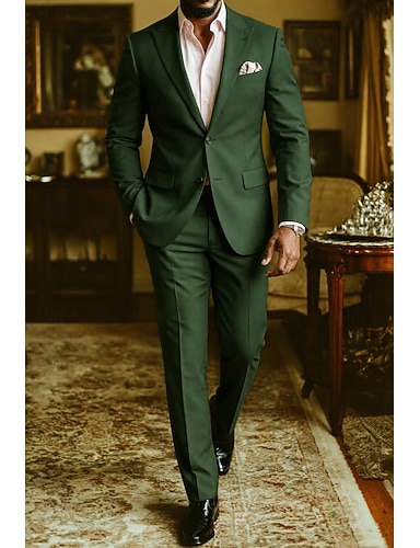 De los hombres Smoking Trajes de negocios Casual Fiesta Burdeos Verde Oscuro Otoño Traje Solapa de Pico Formal Color sólido Ajustado Juego de 2 piezas