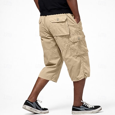 Hombre Pantalones tipo cargo Pantalón Corto Cargo Pantalón corto Pantalones cortos casuales Bolsillo Cintura elástica Plano Medio corto Casual Exterior Ropa de calle Moda Ropa de calle Negro Caqui