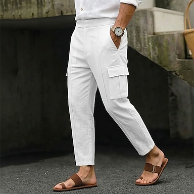 Hombre Pantalones de lino Pantalones pantalones de traje Pantalones de verano Bolsillo Plano Comodidad Suave Exterior Diario Noche Moda Ropa de calle Negro Blanco