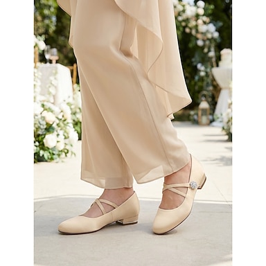 Zapatos de boda elegantes de tacón bajo para la madre de la novia: zapatos de vestir con lazo color champán para mujeres mayores.
