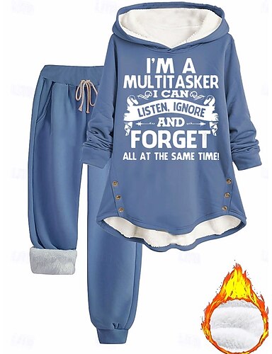 Conjunto de 2 piezas de ropa de casa para mujer sudadera y joggers casual clima frío impresión de frase con forro de forro polar cómodo ajuste de invierno