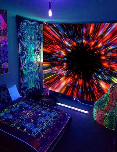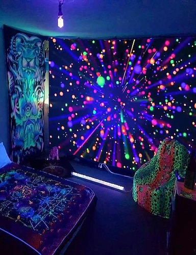 Tapiz de luz negra que brilla en la oscuridad, reactivo a los rayos ultravioleta, para fiestas, neón, espacio estético, psicodélico, alucinante, tapiz colgante, arte mural para pared para sala de