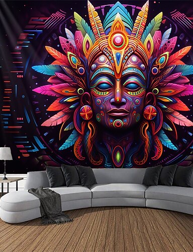 Tapiz de luz negra que reacciona a los rayos ultravioleta y brilla en la oscuridad, para fiestas, neón psicodélico, colorido, mandala colgante, arte mural para pared para sala de estar y dormitorio