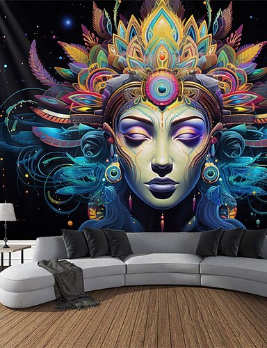 Tapiz de luz negra que reacciona a los rayos ultravioleta y brilla en la oscuridad, mujer psicodélica, resplandor brumoso, fiesta, carnaval, tapiz colgante, arte mural para pared para sala de estar y