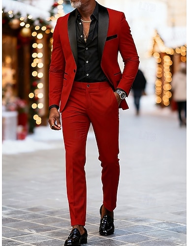 De los hombres Trajes de fiesta Casual Rojo Invierno Traje Solapa de Pico Moda Diario Plaid A Medida Juego de 2 piezas Recto 2 botones