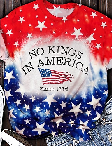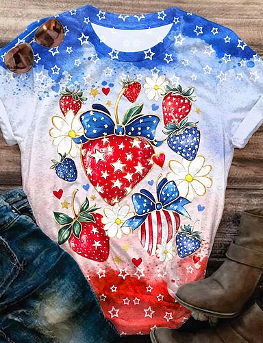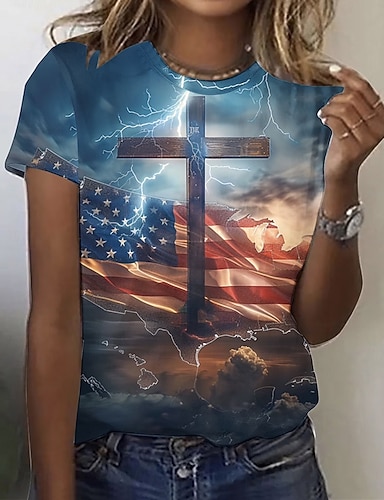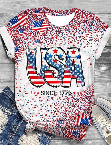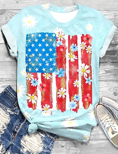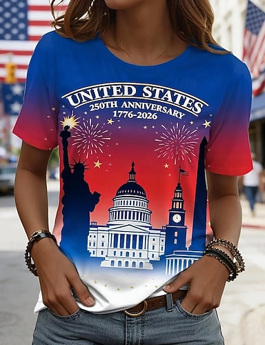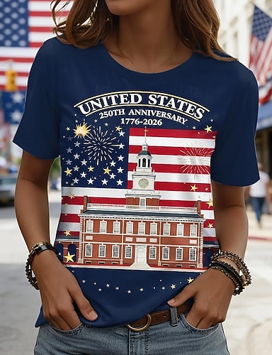 Día de la Independencia Aniversario Americano Patriótico Camiseta de Mujer Gráfica Bandera Nacional Vintage Elegante Clásica Manga Corta Cuello Redondo Tops Regulares Impresión Diaria Fin de Semana
