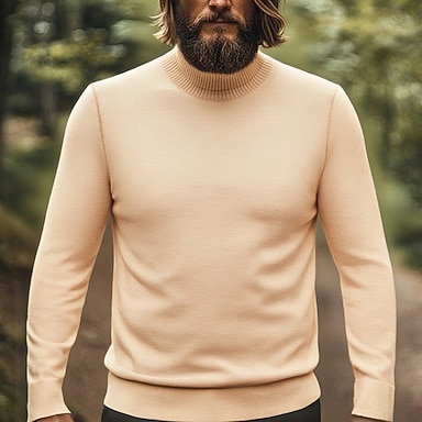 Hombre Suéter de punto Estriado Tejer Tops regulares De Punto Plano Cuello Alto Moda Básico Vacaciones Ropa Cotidiana Ropa Invierno Otoño Color Camello Vino M L XL