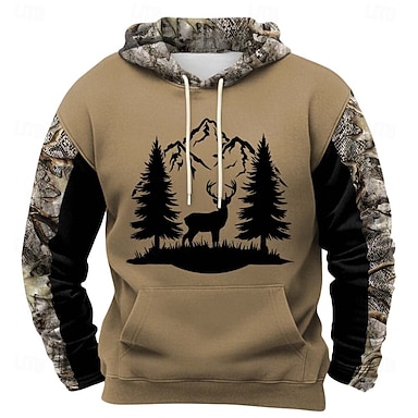 Hombre camuflaje Venados Sudaderas Moda Diario vaquero occidental Manga Larga Con Capucha Vacaciones Caza Negro Marrón Caqui Correa Cremallera Otoño Invierno Diseñador S M L XL XXL XXXL