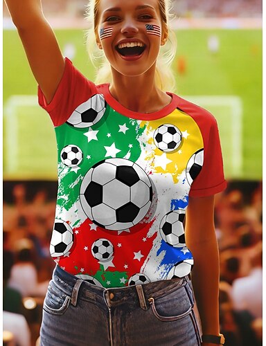 100% Algodón Niños Chico Blanco Graphic Jugador de fútbol Camiseta Blusa Cuello Barco Manga Corta Exterior Uso Diario Moda Ropa de calle Design Estampado Verano