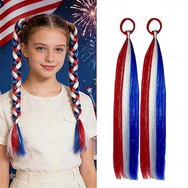 Extensiones de cabello rojo/blanco/azul, extensiones de coleta con mechas de oropel y gomas elásticas para mujeres y niñas, accesorios de colores variados para uso diario, fiestas y festivales,