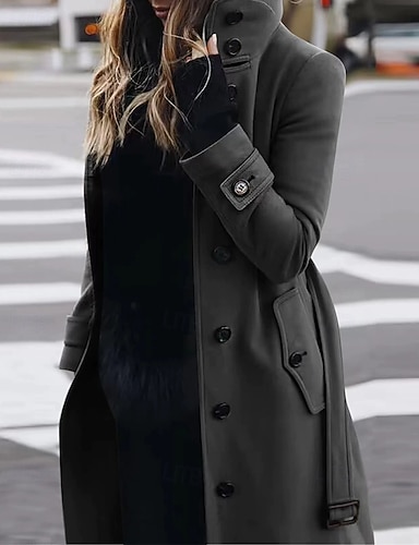 Mujer Abrigo de invierno Abrigo Mantiene abrigado Cómodo Bolsillo Botones Elegante Casual Plano Vacaciones Calle Casual Ropa Cotidiana Largo Cuello Vuelto Ajuste regular Manga Larga Ropa de calle