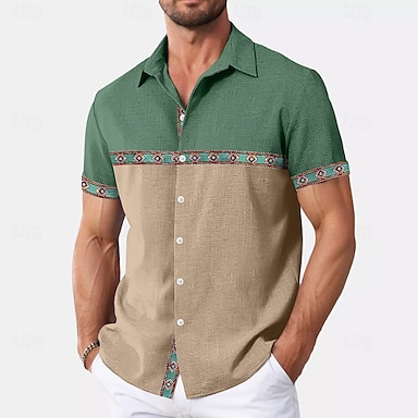 Hombre Camisa Camisa de lino Camisa de verano Camisa con botones Camisa casual Plano Vacaciones Diario Blanco + Rosa Blanco + Verde Verde + rosa Rosa + azul Manga Larga Diseño Verano Primavera Ropa