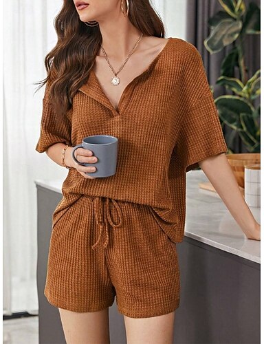 Mujer Conjuntos de dos piezas Conjuntos de pantalones cortos Manga Corta Escote en Pico Color sólido Moda Ropa de calle Casual Diario Exterior Negro Blanco Amarillo Verano Ajuste regular