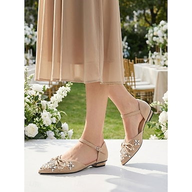 Bailarinas nude adornadas para mujer: elegantes zapatos de punta con tira al tobillo para la madre de la novia. &invitados a la boda en el jardín
