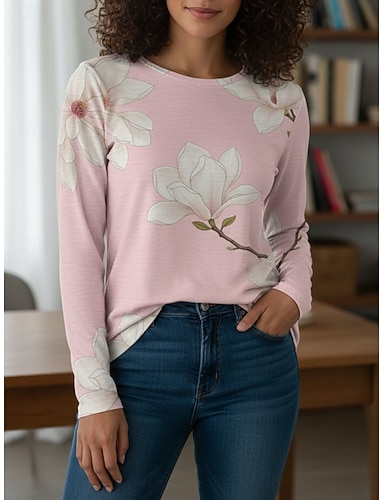 Mujer Camiseta Estampado Floral Graphic Moda Elegante Casual Manga Larga Cuello Barco Tops regulares Diario Fin de semana Ropa de vacaciones Amarillo Rosa Morado Verde Trébol Verano Primavera Otoño