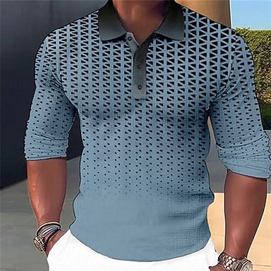 Hombre Graphic Golf Polo Manga Larga Camisas de polo Diseño Casual Exterior Ropa Deportiva Ropa Cotidiana Impresión 3D Botones Primavera Otoño Invierno Negro Azul Oscuro Azul Claro