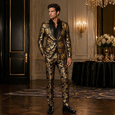 Conjunto Retro Antiguo Años 80 Pantalones Abrigos Larga Caballero Jacquard Floral Disfraz Hombre Mascarada Fiesta Fiesta de Cóctel Adulto Chaqueta Pantalones Todas las Temporadas