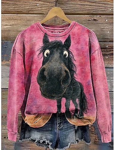 Mujer Sudadera Sudaderas Estampado Graphic Animal Cálido Clásico Casual Manga Larga Cuello Barco Tops regulares Casual Hogar Calle Azul Piscina Rosa Morado Marrón Otoño Invierno