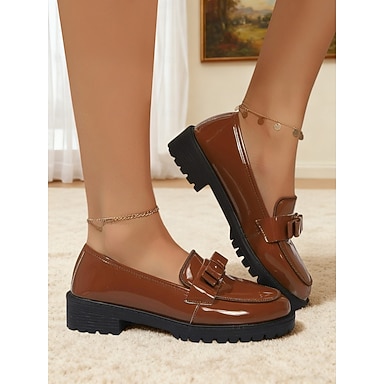 Mocasines de mujer rojos de charol con detalle de moño y suela gruesa – Zapatos elegantes sin cordones para oficina y uso diario